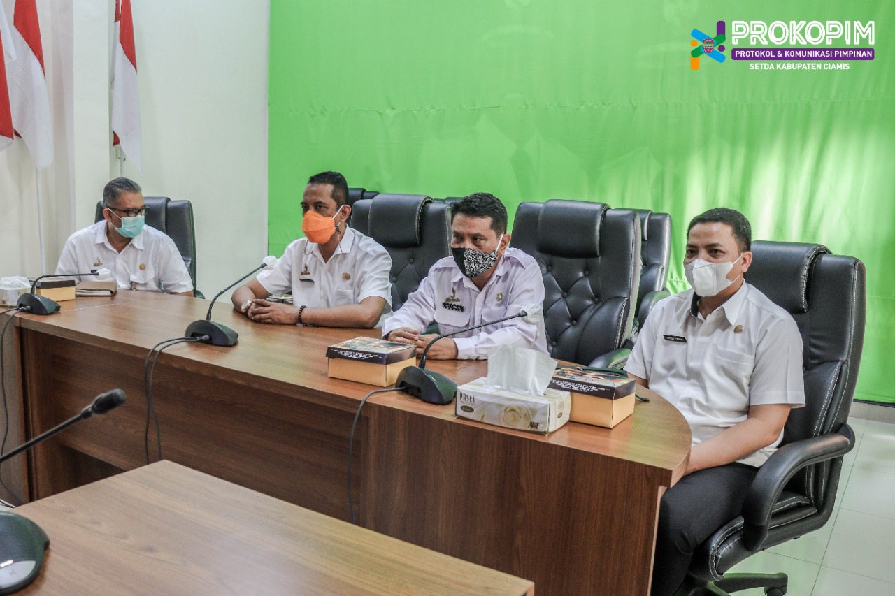 Untuk Pemkab Ciamis diwakili oleh Kepala BPBD Ciamis, Kepala Dinas Indag dan Kepala SKPD terkait lainya di ruang vidcon pendopo.