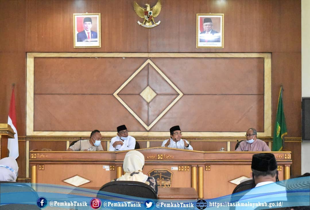 Berita Kab.Tasikmalaya–Pemerintah Daerah Kabupaten Tasikmalaya melaksanakan Rapat Koordinasi (Rakor) Persiapan Kegiatan Belajar Tatap Muka yang dipimpin langsung Sekretaris Daerah Mohamad Zen dengan 39 Camat se-Kab. Tasikmalaya bertempat di Operation Room Sekretariat Daerah, Jumat (05/02/2020).