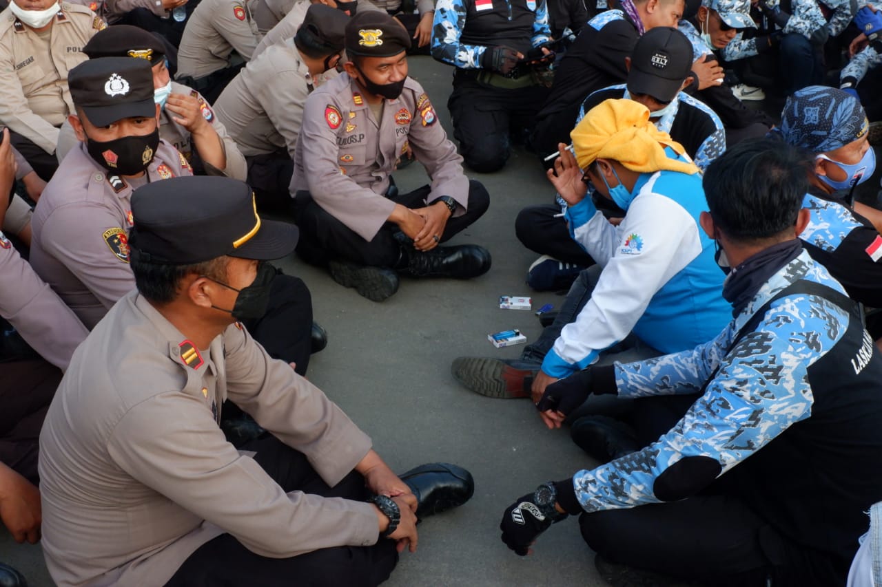 Selanjutnya Shinto Silitonga menyampaikan Polda Banten dan Polres Jajaran melakukan pengamanan menerjunkan personel untuk melayani dan memastikan aspirasi pengunjuk rasa dengan massa 2.000 buruh dari kelompok buruh dan mahasiswa dalam rangka menuntut kenaikan Upah Minimum Provinsi (UMP), “Kami menerjunkan personel diberbagai titik lokasi pelaksanaan aksi unjuk rasa di KP3B untuk mengamankan dan melayani jalannya unjuk rasa supaya berjalan dengan aman dan tidak menggangu perjalanan, serta tetap menerapkan protokol kesehatan,”ujar Shinto Silitonga.