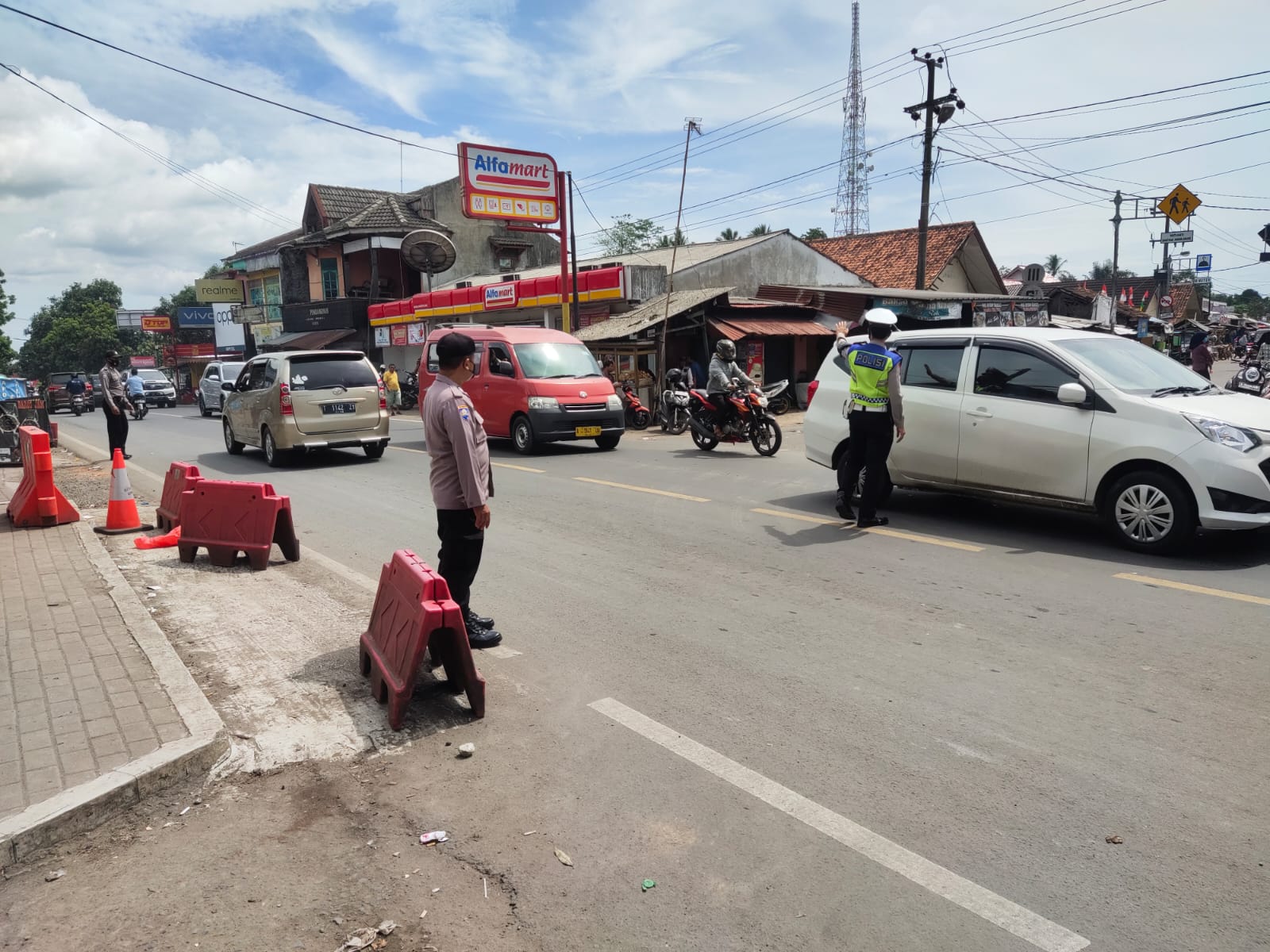 Berita Polsek Baros Polres Serang Kota Polda Banten– Mencegah terjadinya kecelakaan lalu lintas di jalan raya, anggota Polsek Baros Polres Serang Kota Polda Banten melaksanakan kegiatan strong point di ruas jalan yang di nilai padat kendaraan di pagi hari, Minggu (14/11/2021).