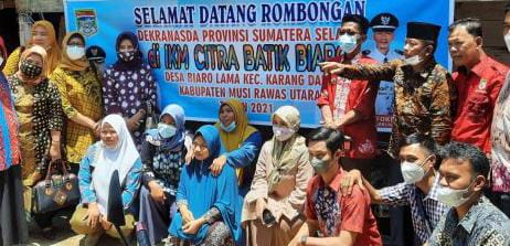 “Kedatangan kami ke Desa Biaro ini, untuk melihat langsung industri batik rumahan yang di kerjakan warga Muratara ini” ucapnya.