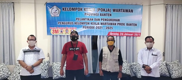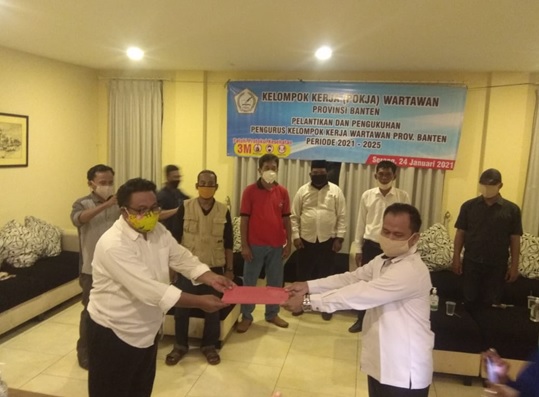 “ Pelantikan dan Pengukuhan Pengurus Pokja Wartawan Provinsi Banten, diadakan di Hotel Prima Resort pada Sabtu-Minggu 23-24 Januari 2021. “ Dalam sambutannya Hasuri.SH “ ia mengatakan, bahwa kedepan ia ingin Pokja menjadi wadah organisasi wartawan yang tidak biasa biasa saja. Oleh karena itu, dibutuhkan pemikiran dan gagasan serta tindakan, sebagai wujud konkret dari cita cita organisasi.