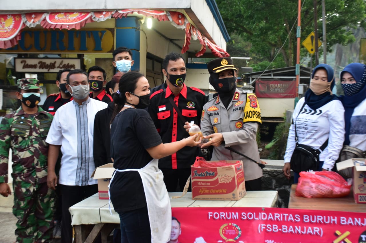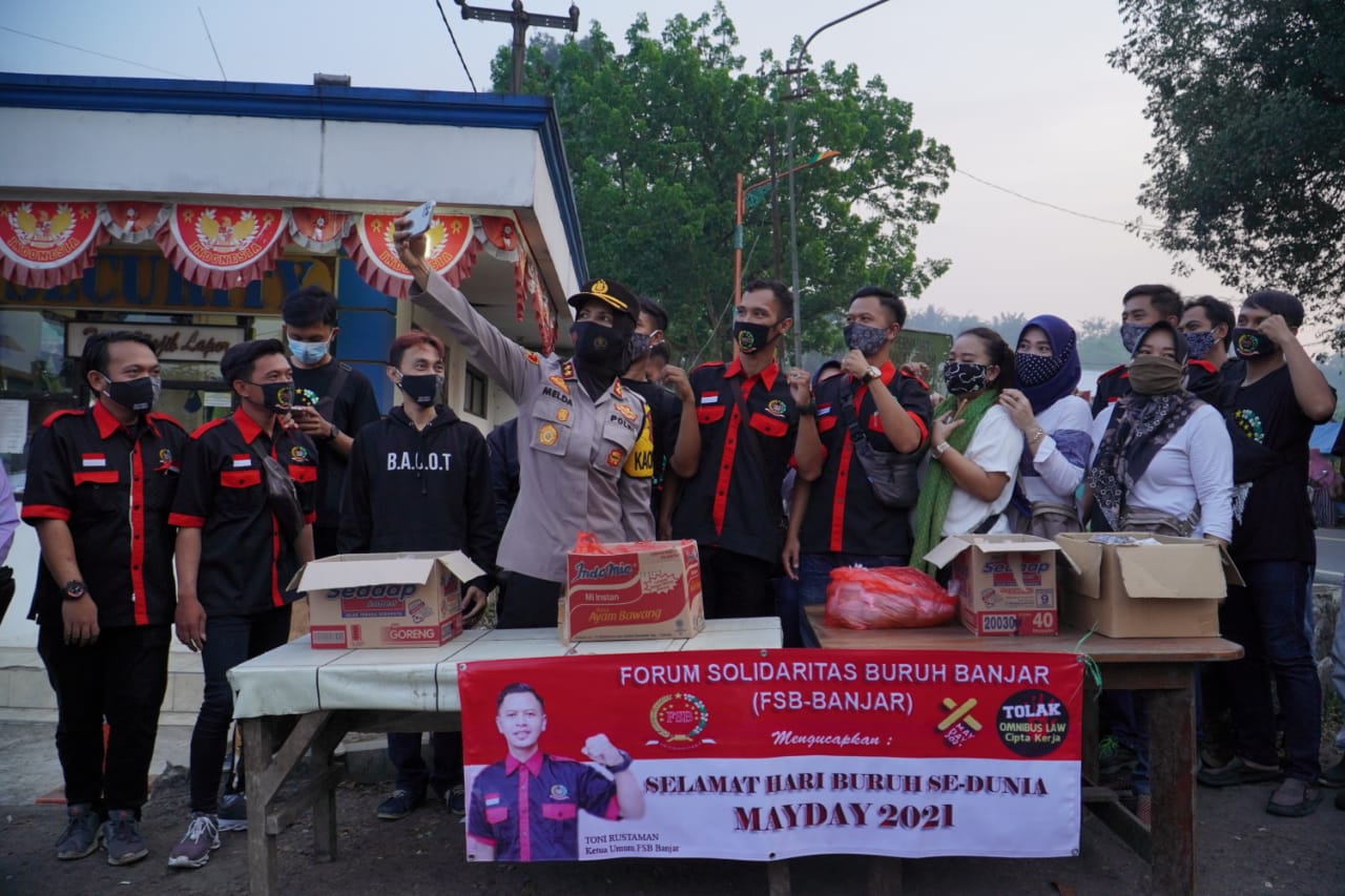 Kegiatan Baksos tersebut diselenggarakan oleh Forum Serikat Buruh Kota Banjar bersama Polres Banjar dengan memberikan masker dan takjil bagi karyawan PT. APL.