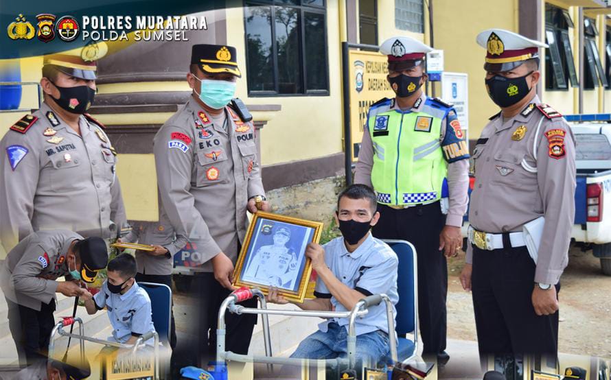 Pembagian sembako kepada penyandang Disabilitas Heri Yanto (29) warga Rt 03 Pasar Surulangun Rawas, Kecamatan Rawas Ulu, Kabupaten Muratara tersebut dilakukan Kapolres Muratara, AKBP Eko Sumaryanto. Rasa kepedulian tersebut dibagikan bertepatan memperingati Hari Ulang Tahun Lalulintas ke 66, Selasa 14/9/2021.