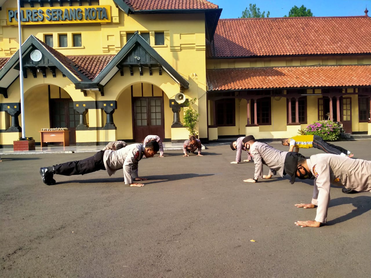 Kegiatan olahraga ringan dilaksanakan setelah Apel Pagi dipimpin Kabagops Polres Serang Kota Kompol Yudha Hermawan, SH., MM., hadir Kabagsumda Polres Serang Kota, Para Kasat jajaran Polres Serang Kota, Para Kasi jajaran Polres Serang Kota, Ka SPKT Polres Serang Kota, Pa Polres Serang Kota, Ba Polres Serang Kota, Ta Polres Serang Kota dan ASN Polres Serang Kota.