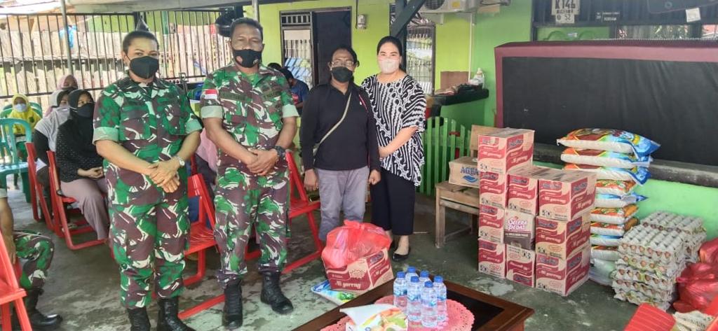 Bantuan diserahkan langsung oleh Ketua Persit KCK Cabang XVI Ny. Sandra Richard Arnold Y. Sangari, bertempat di Asrama Bucend IV Kotaraja, Distrik Abepura, Kota Jayapura, Kamis (13/1).