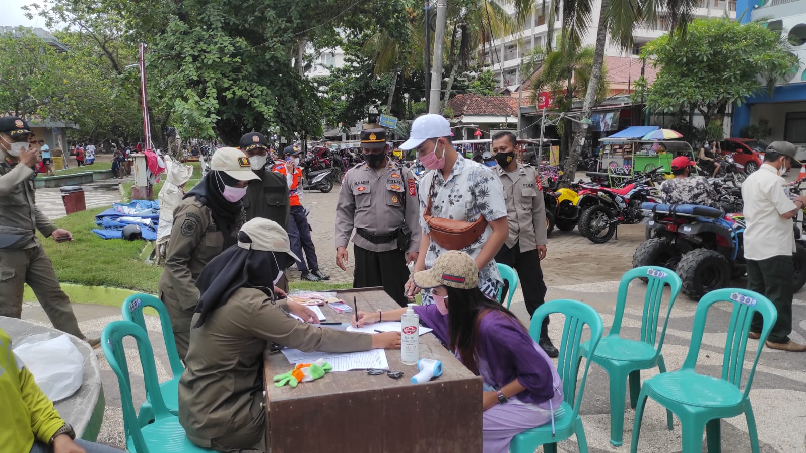 Berita Kab.Pangandaran – Personel gabungan TNI-Polri dan Instansi Pemerintah terkait melaksanakan operasi yustisi penegakan disiplin protokol kesehatan Covid-19 kepada wisatawan dan warga di kawasan obyek wisata Pantai Pangandaran, Kabupaten Pangandaran, Jawa Barat, Sabtu (13/11/2021).