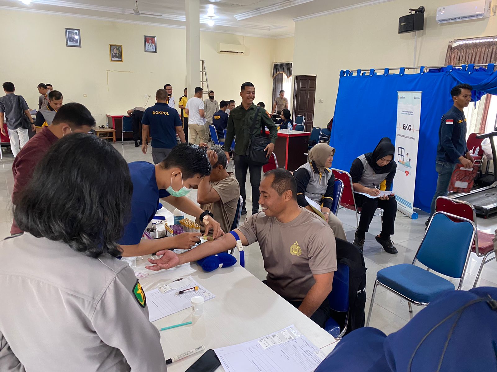 Ratusan personel Polres Sekadau mengikuti Pemeriksaan Kesehatan Berkala (Rikesla) yang dilaksanakan berkala oleh Biddokes Polda Kalbar bekerjasama dengan PT. Kimia Farma di aula Bhayangkara Patriatama Polres Sekadau, Kamis (11/5/2023) pagi.