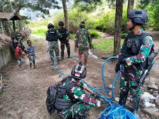 Baraknews Lanny Jaya — Kepedulian Pos Pirime Satgas Yonif Mekanis 203/AK terhadap masalah air yang di alami oleh warga di Kampung Wenam, Distrik Pirime, dengan memberikan selang untuk mengaliri air bersih menuju Kampung Wenam, Distrik Pirime, Kabupaten Lanny Jaya, Papua, Sabtu (10/12/2022).