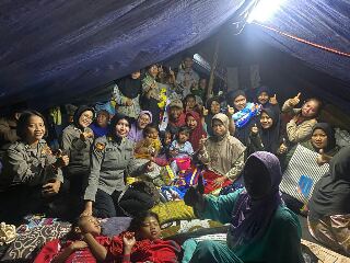 Personil Polres Karawang turut membantu melakukan evakuasi dan pendistribusian bantuan untuk korban serta trauma healing bagi para pengungsi di lakukan oleh Polwan