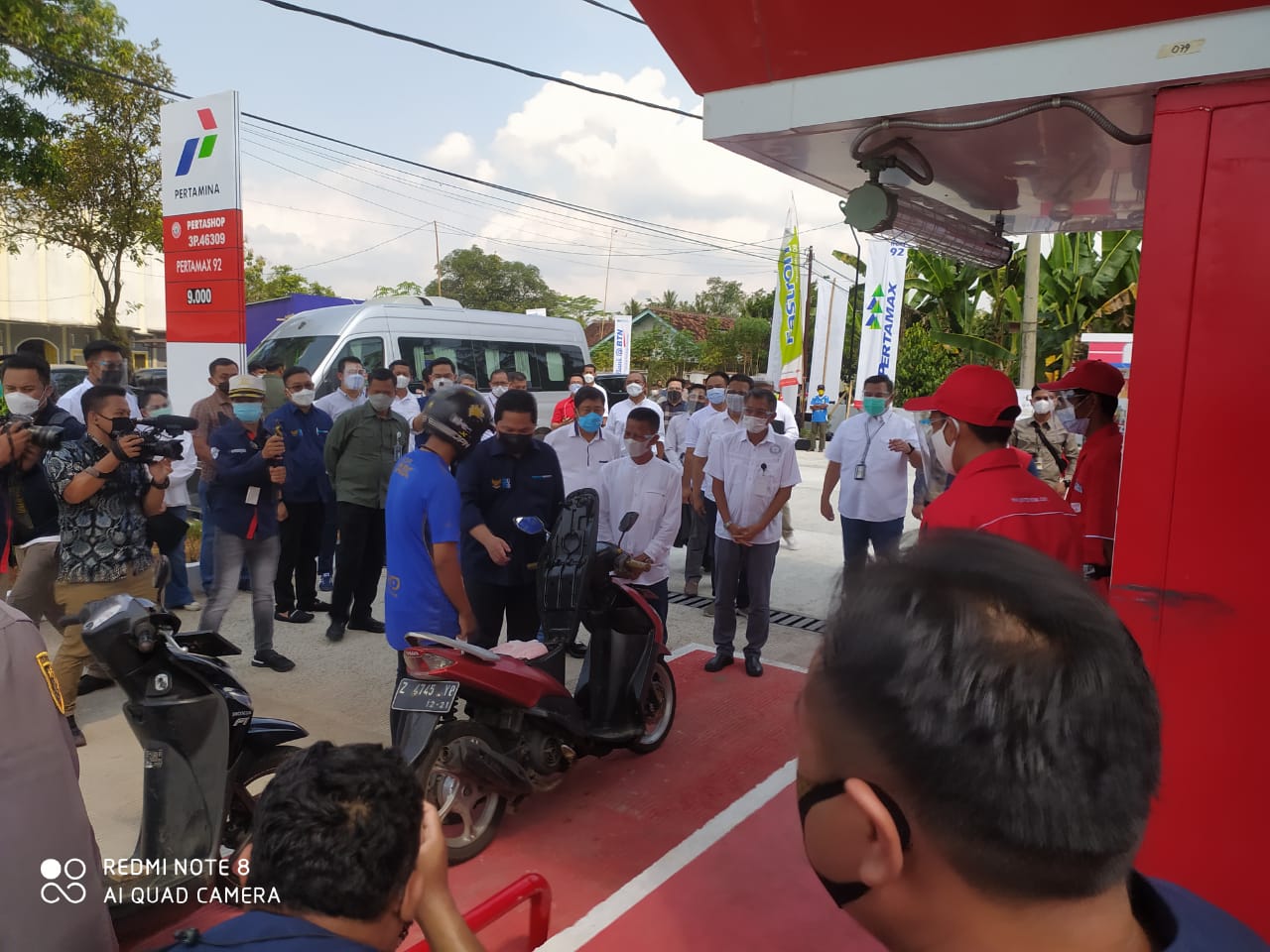 H.JOjo Juarno ketika di wwncarai awak media mengatkan,”pertshop Pertamina miliknya dibuka langsung oleh Menteri BUMN Erik Tohir yang kebetulan melakukan kunjungan ke wilayah Kecamatan Pamarican Kabupaten Ciamis,”ucapnya