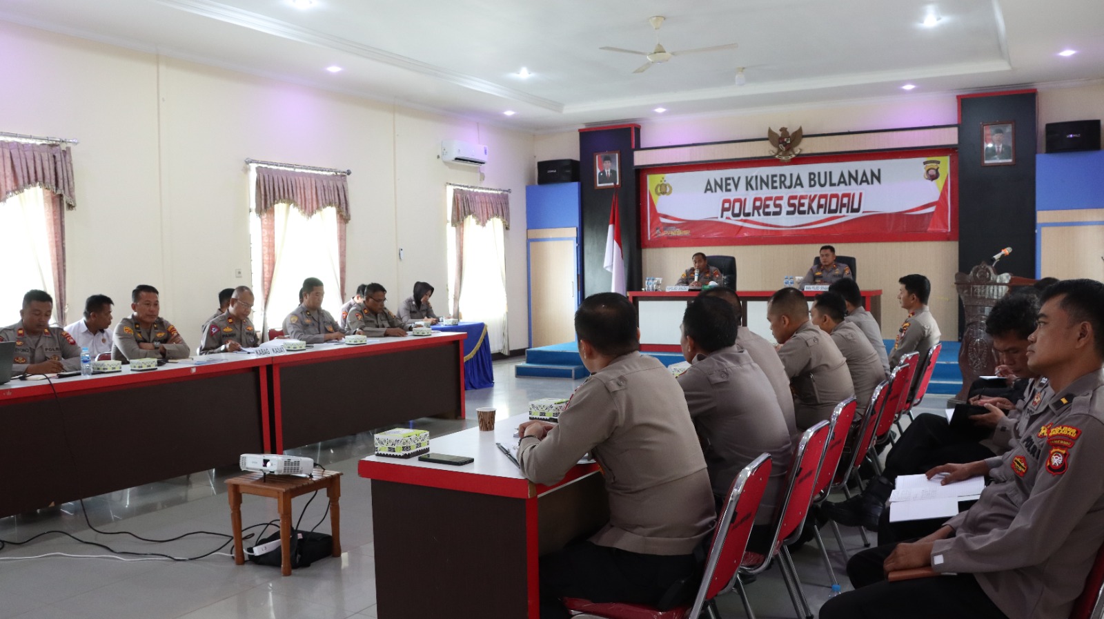 SEKADAU,Polda Kalbar – Polres Sekadau,Kapolres Sekadau AKBP Suyono, S.I.K., S.H., M.H didampingi Wakapolres Kompol Hoerrudin, S.I.K pimpin kegiatan Anev kinerja bulanan . Anev berlangsung di aula Bhayangkara Patriatama, Senin (15/5/2023) pagi.
