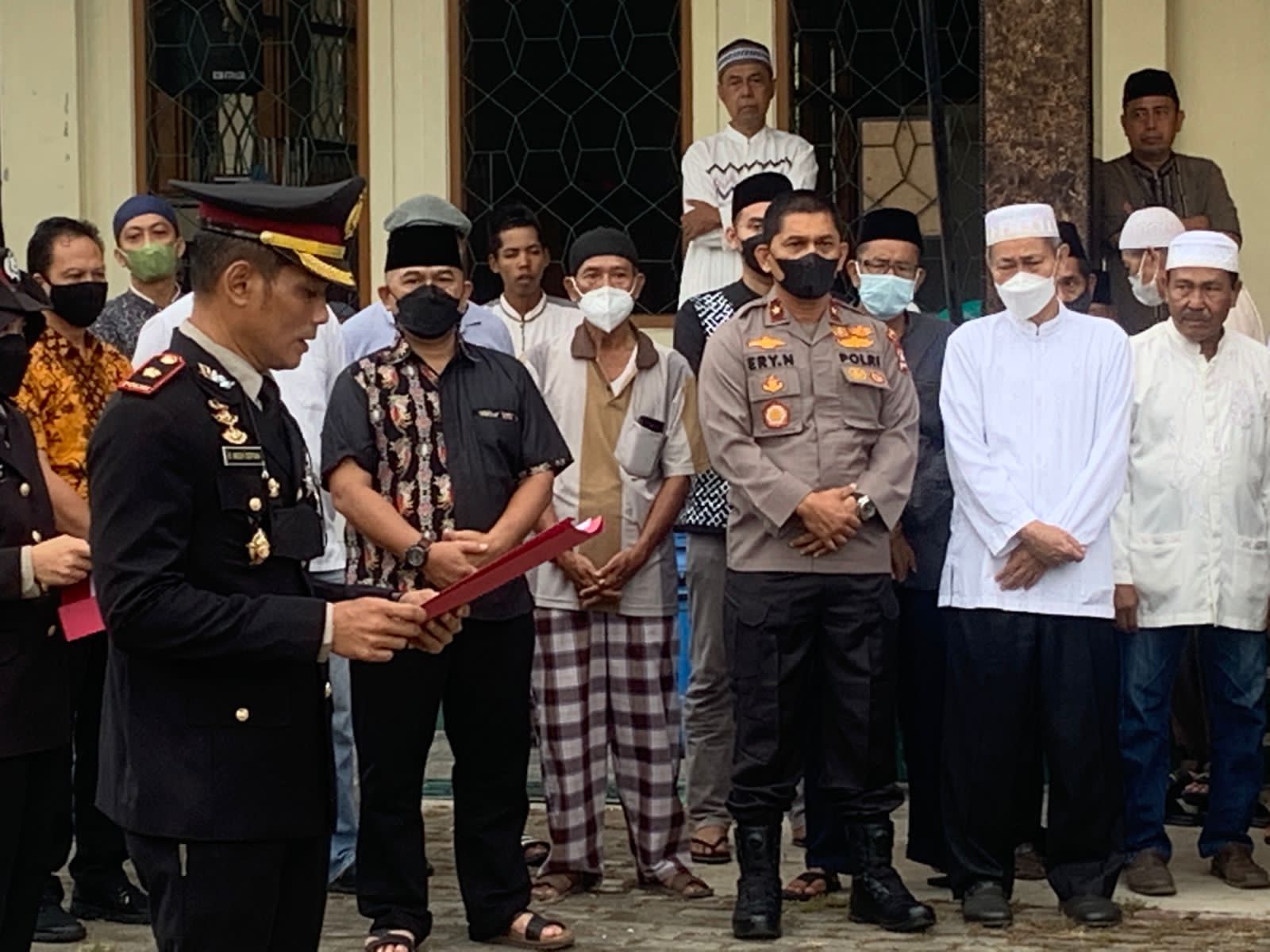 Upacara pemakaman tersebut dihadiri Wakapolda Banten Brigjen Pol Drs. Ery Nursatari, Agen Intelijen Kepolisian Madya Tk. II Baintelkam Polri Kombes Pol Asep Nalaludin, Dirsamapta Polda Banten Kombes Pol Noerwiyanto, Wadirbinmas Polda Banten AKBP Zainuddin, para Kasubdit Ditintelkam Polda Banten, Ketua Umum Mathaul Anwar KH. Embay Mulya Syarief dan Ketua MUI kota Serang KH. Mahmudi.