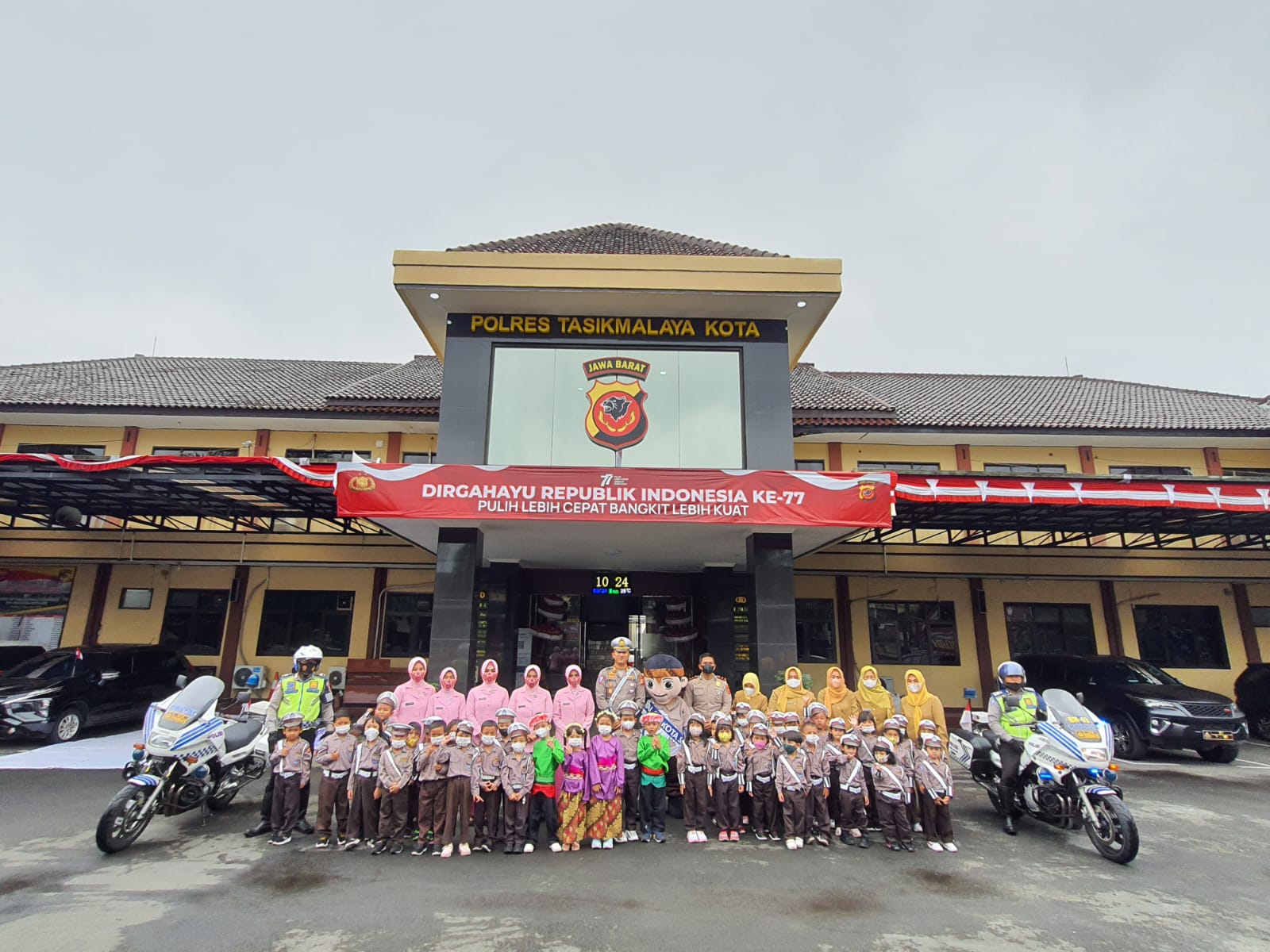 Sedikitnya 50 siswa dari Taman Kanak Kanak Kemala Bhayangkari dengan senang mengikuti arahan dari Unit Kamsel dan Polwan Satlantas Polres Tasikmalaya Kota yang memberikan arahan pengenalan rambu rambu lalu lintas, cara menyeberang jalan yang benar, dan lain lain.