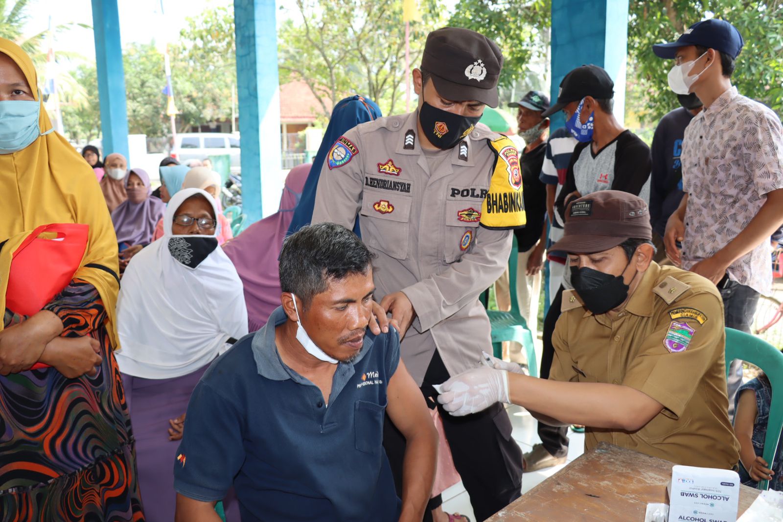 Pelayanan vaksinasi Covid-19, tenaga kesehatan berasal dari Puskesmas Lakbok. Sementara Polri hadir untuk memastikan pelaksanaan vaksinasi berjalan lancar dan tertib.