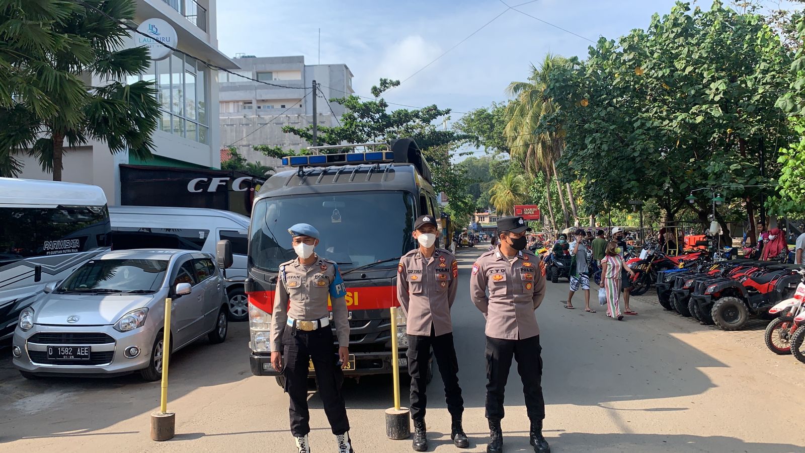 Salah satunya sejumlah personel diterjunkan di kawasan Pantai Pangandaran, Kabupaten Pangandaran, Jawa Barat, pada Minggu (26 September 2021). Sebanyak dua personel bintara Polres Ciamis diterjunkan untuk mengingatkan wisatawan dan pelaku usaha untuk selalu menjalankan protokol kesehatan.