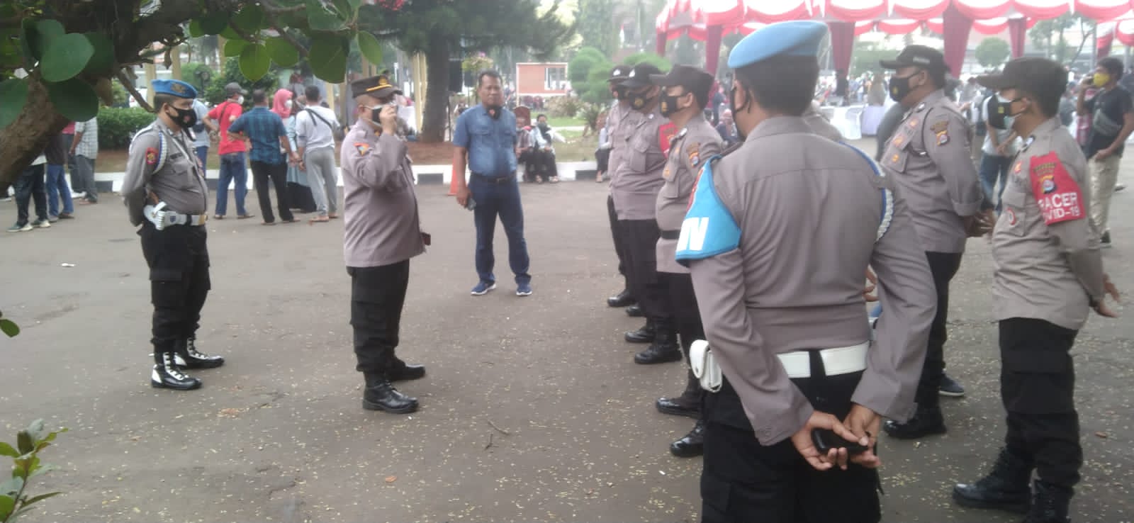 Berita Polres Cilegon–Polres Cilegon Polda Banten melaksanakan kegiatan pengamanan Vaksinasi massal yang dilaksanakan Asosiasi Klinik Indonesia Cilegon di Rumah dinas walikota, Minggu, 29/8/2021.