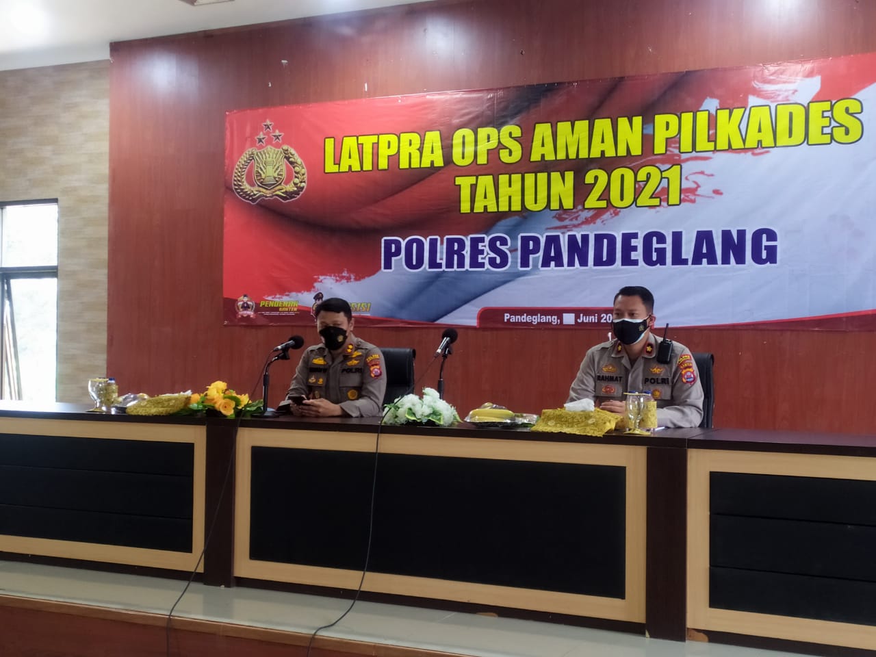 Berita Polres Pandeglang– bertempat di Ruang Aula Polres Pandeglang Lantai 2 telah dilaksanakan Latihan Pra Operasi Aman Pilkades dalam rangka Pengamanan Pemilihan Kepala Desa Serentak Tahun 2021 di Kabupaten Pandeglang.