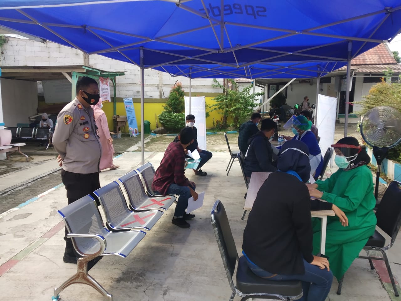 “Sebanyak 12 Vial Sinovac disediakan untuk vaksinasi masal hari ini,”kata Kapolsek Baros AKP Wahyu Bintarna, saat diwawancara awak media dilokasi.