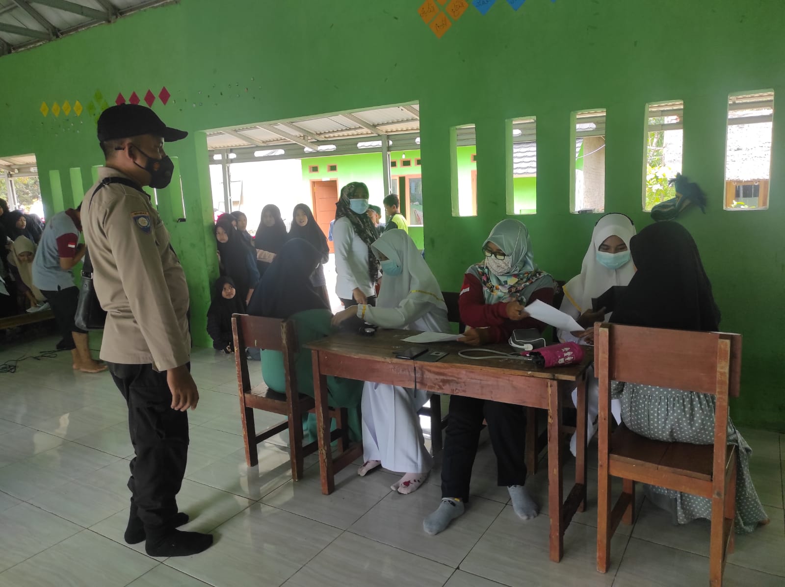 Berita Polsek Cibaliung,- Berbagai upaya terus dilakukan untuk putuskan mata rantai penyebaran Covid 19 di wilayah Hukum Polsek Cibaliung Polres Pandeglang, Salah satu diantaranya adalah dengan melaksanakan *VAKSINISASI DOSIS 1&2*, Di pondok pesantren Miftahulsaadah dan memberikan edukasi serta pesan Kamtibmas yang berkaitan tentang Prokes, Kamis (16/12/2021) .