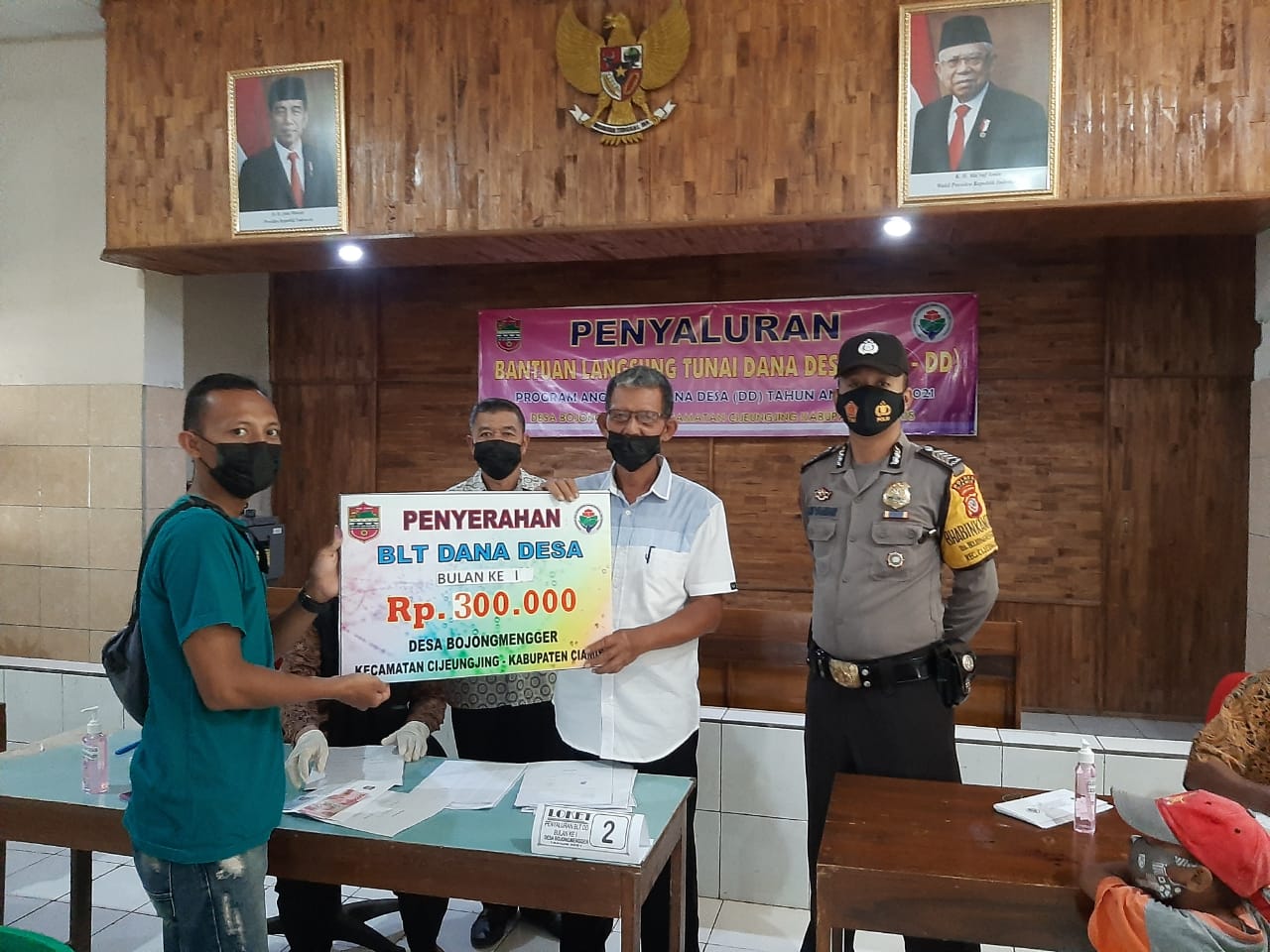 Kapolsek Cijeungjing AKP Roesdiana mengungkapkan, monitoring yang dilakukan oleh anggota Bhabinkamtibmas Desa Bojongmengger Bripka Ari Yanuar dalam rangka untuk memberikan keamanan dan kenyamanan para penerima bantuan. Selain itu juga mengantisipasi terjadinya kerumunan akibat banyaknya warga penerima bantuan yang datang.
