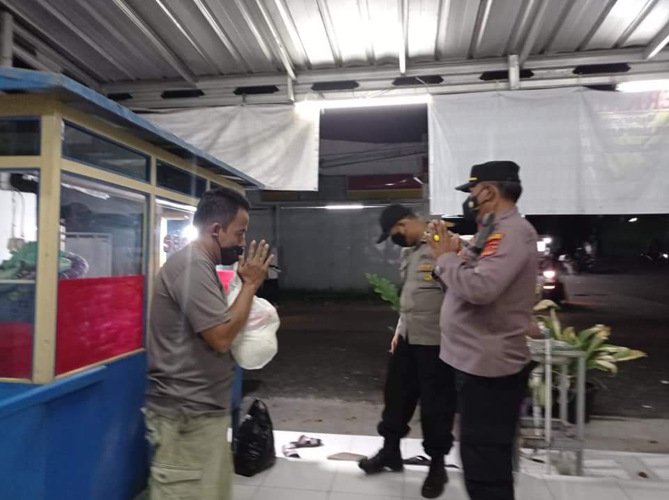Polsek Kasokandel Bagikan Paket Sembako Ke Pedagang Kaki Lima Yang terdampak PPKM Mikro