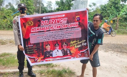 Dalam sosialisasi tersebut personil Polsek Kota Besi membentang spanduk Stop kebakaran Hutan dan lahan dan menghimbau kepada masyarakat tentang larang pembakaran hutan dan lahan sesuai undang-undang Nomor 41 tahun 1999 tentang kehutanan dan undang-undang Nomor 1 tahun 1946 tentang KUHP.