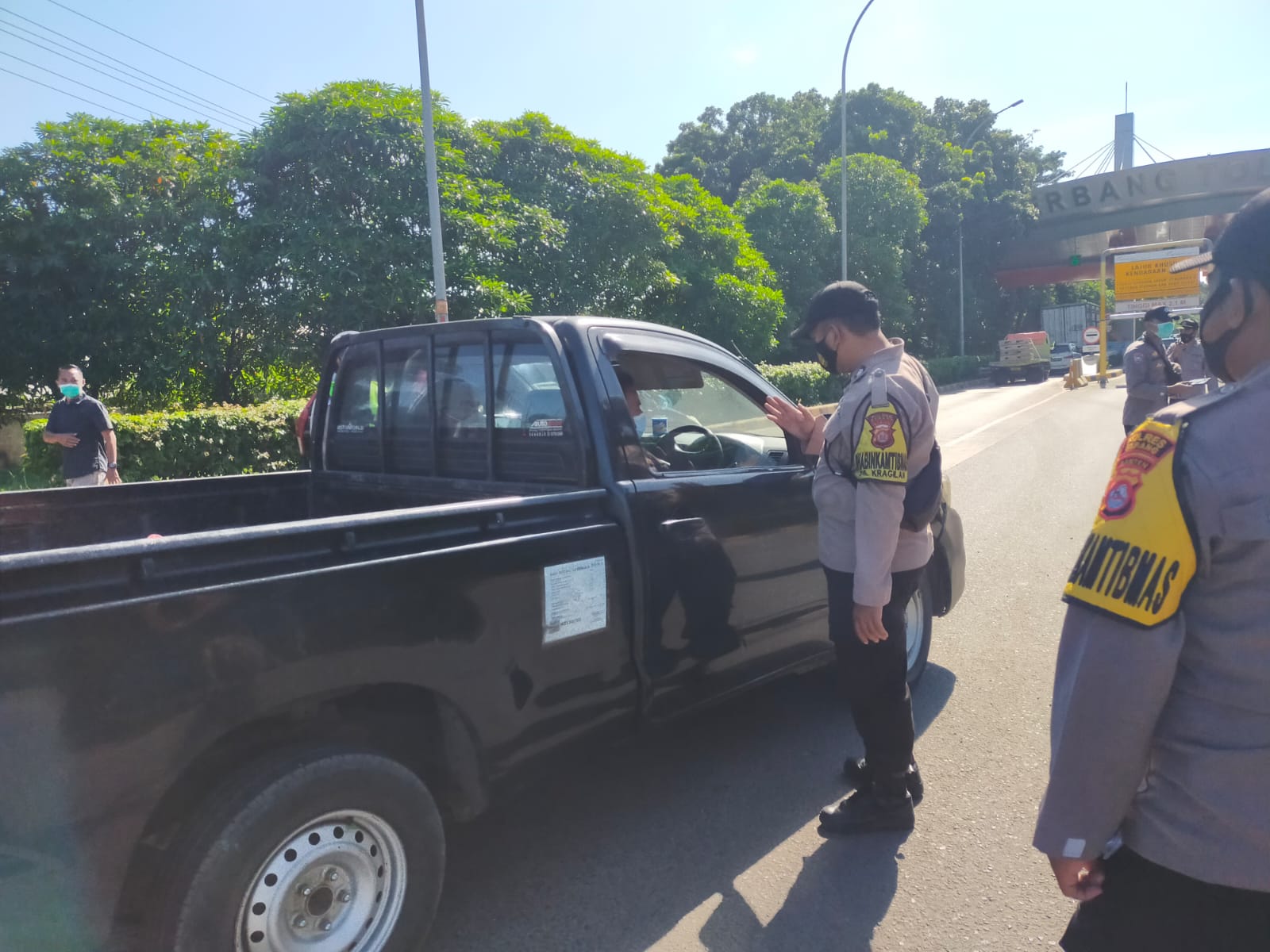 Penyekatan dilakukan di pintu masuk gerbang Tol Ciujung arah Jakarta.