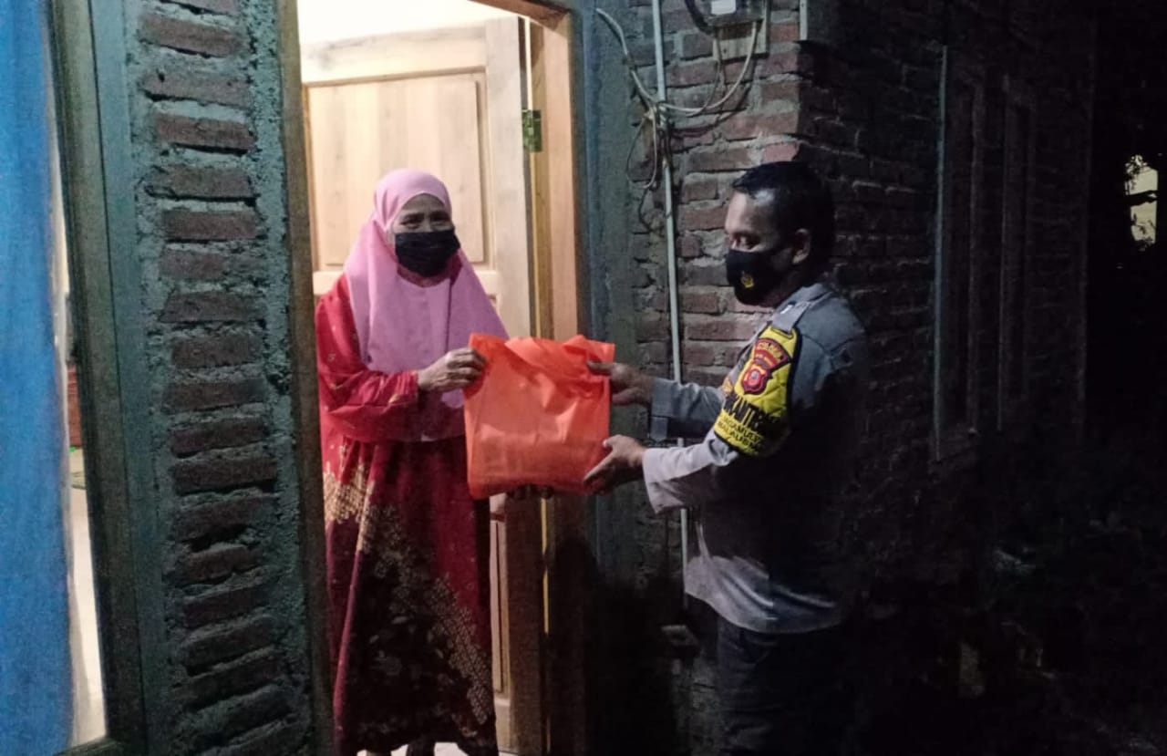 Terpantau Polsek Malausma Polres Majalengka lakukan patroli skala besar dan berikan bantuan sembako bagi Warga dan para pedagang yang terdampak pandemi Covid-19 di wilayah hukum Polsek Malausma, Minggu (25/7/2021) malam.