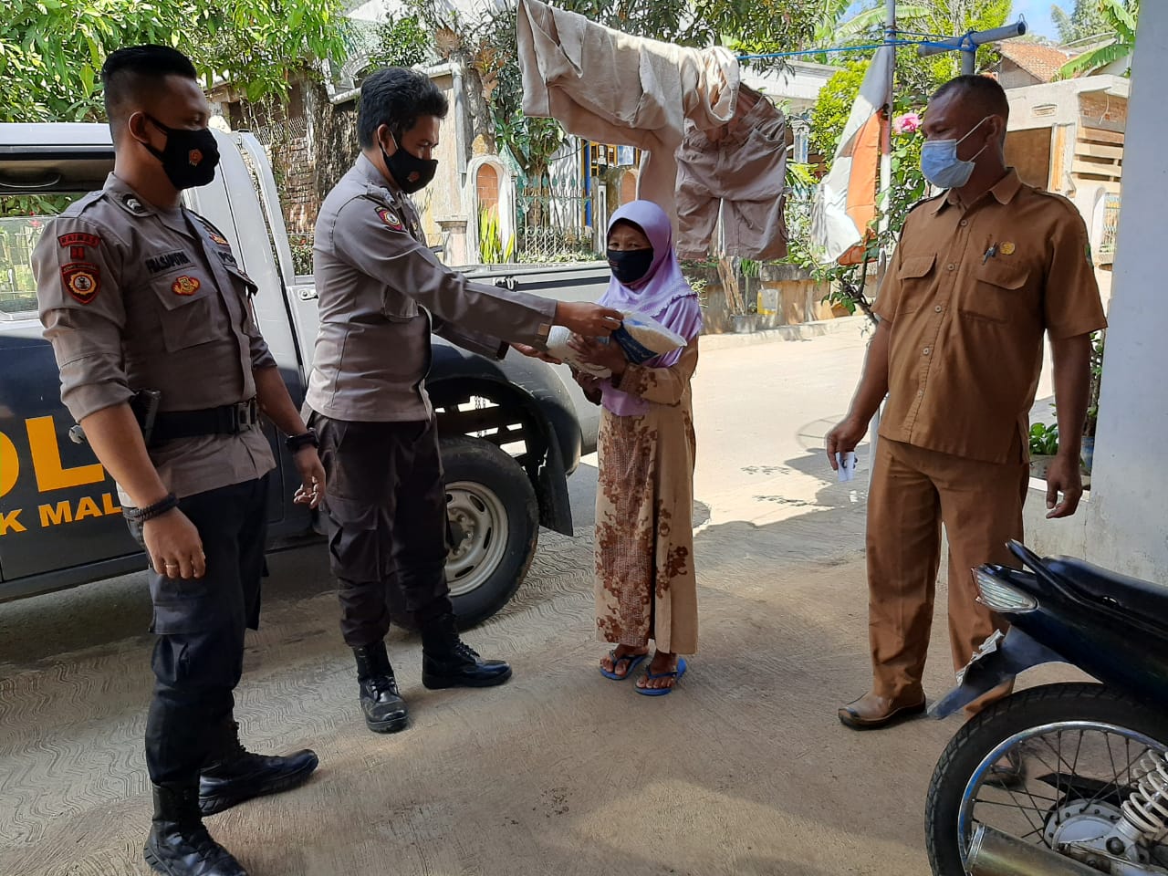 Berita Polres Majalengka, Untuk meringankan beban ekonomi warga masyarakat di masaa pandemi Covid 19, Kapolsek Malausma Polres Majalengka IPTU Agus Malik beserta jajarannya menyerahkan bantuan beras dari Polri kepada warga binaannya di Kecamatan Malausma, Kabupaten Majalengka, Rabu (4/8/2021).