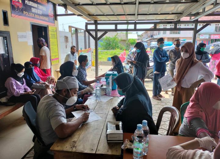Gerai vaksinasi dilaksanakan di halaman Mapolsek Malingping di Jalan Raya Malingping – Binuangeun Km 05 Desa Sukamanah Kecamatan Malingping Kabupaten Lebak Provinsi Banten, disediakan untuk masyarakat Malingping dosis I dan dosis II.