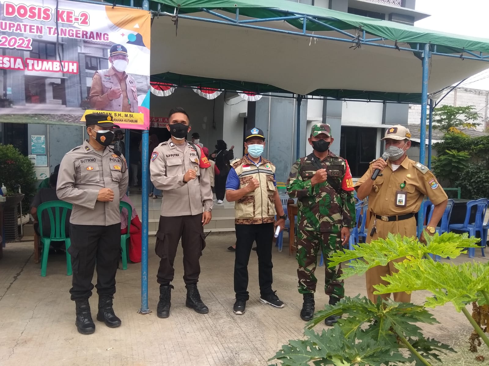 Berita Polres Tangerang– Jajaran Polsek Pasar Kemis Polresta Tangerang yang dipimpin Ipda Sutikno melaksanakan Pengamanan dan Monitoring Vaksinasi Covid-19 Dosis ke 2 terhadap warga Kelurahan Kuta Bumi, Senin (06/09/2021).