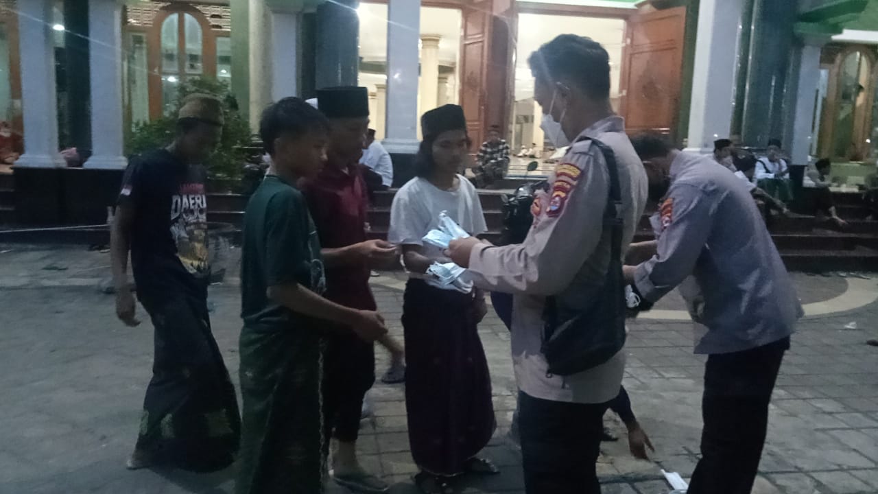 Berita Polsek Pasarkemis Polresta Tangerang Polda Banten— Polisi jajaran Polsek Pasarkemis Polresta Tangerang Polda Banten membagikan masker kepada jamaah shalat magrib di Masjid Al-Istiqlaliyah Kp. Cilongok Des Sukamantri Kecamatan Pasarkemis Kabupaten Tangerang, Sabtu (13/11/2021) malam.