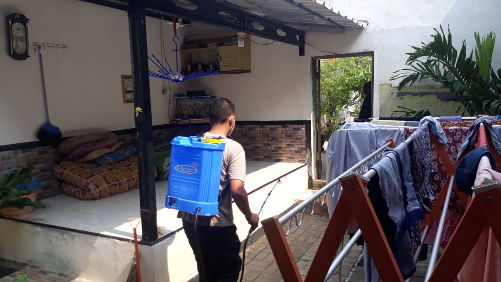 Berita Polres Kota Serang – Hari Bhayangkara ke-75 tahun 2021 ditengah Pandemi covid-19, Polsek Serang Polres Serang Kota Polda Banten gelar bhakti sosial berupa penyemprotan disinfektan di Lingkungan Bhayangkara baru Kelurahan Sumur peucung Kecamatan Serang Kota Serang. (27/6/2021).