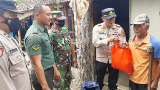 Baraknews Polres Indramayu,– Polsek Sindang jajaran Polres Indramayu Polda Jabar bersama Koramil Sindang salurkan bantuan sosial (Bansos) kepada warga di Desa Terusan, Kecamatan Sindang, Kabupaten Indramayu.