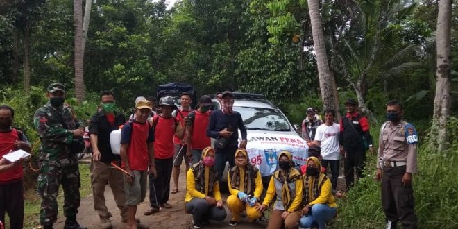 Berita Ciamis (Jawa Barat)– Kapolsek Sukadana Iptu Asep Setiawan Prayatna didampingi Kanit Binma Aiptu Carwa, Kanit IK Aiptu Eddy Heryanto, Kanit Provos Aiptu Totong Solihin dan Babinsa Ciparigi Koptu Agung Riyanto melaksanakan kegiatan Penyemprotan Disinsfektan.