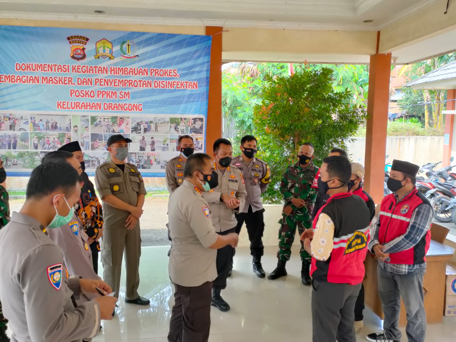 Hadir dalam kegiatan Kombes.Pol. Zuhdi, B.A.,SH., Team Korbinmas Baharkam Mabes Polri, Kombes.Pol.Riki Yanuarfi, SH, M.Si., Team Binmas Polda Banten., AKP Achmadi, SH, Camat Taktakan, Danramil Taktakan, Kepala Puskesmas Taktakan, Lurah Drangong, Babinsa Drangong, Satgas PPKM SM, FKPM Kelurahan Drangong, Karang Taruna Kelurahan Drangong.