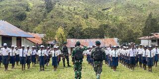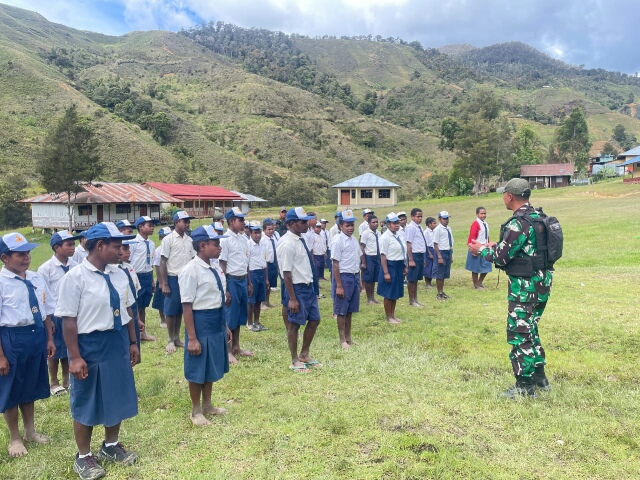 “Saya mengucapkan terima kasih banyak kepada Bapak TNI Pos Malagay yang telah memberikan materi baris-berbaris serta membagikan alat tulis hingga pakaian sekolah untuk murid-murid, semoga kebaikan yang diberikan kepada kami dibalas oleh Tuhan Yang Maha Esa,” ucapnya.