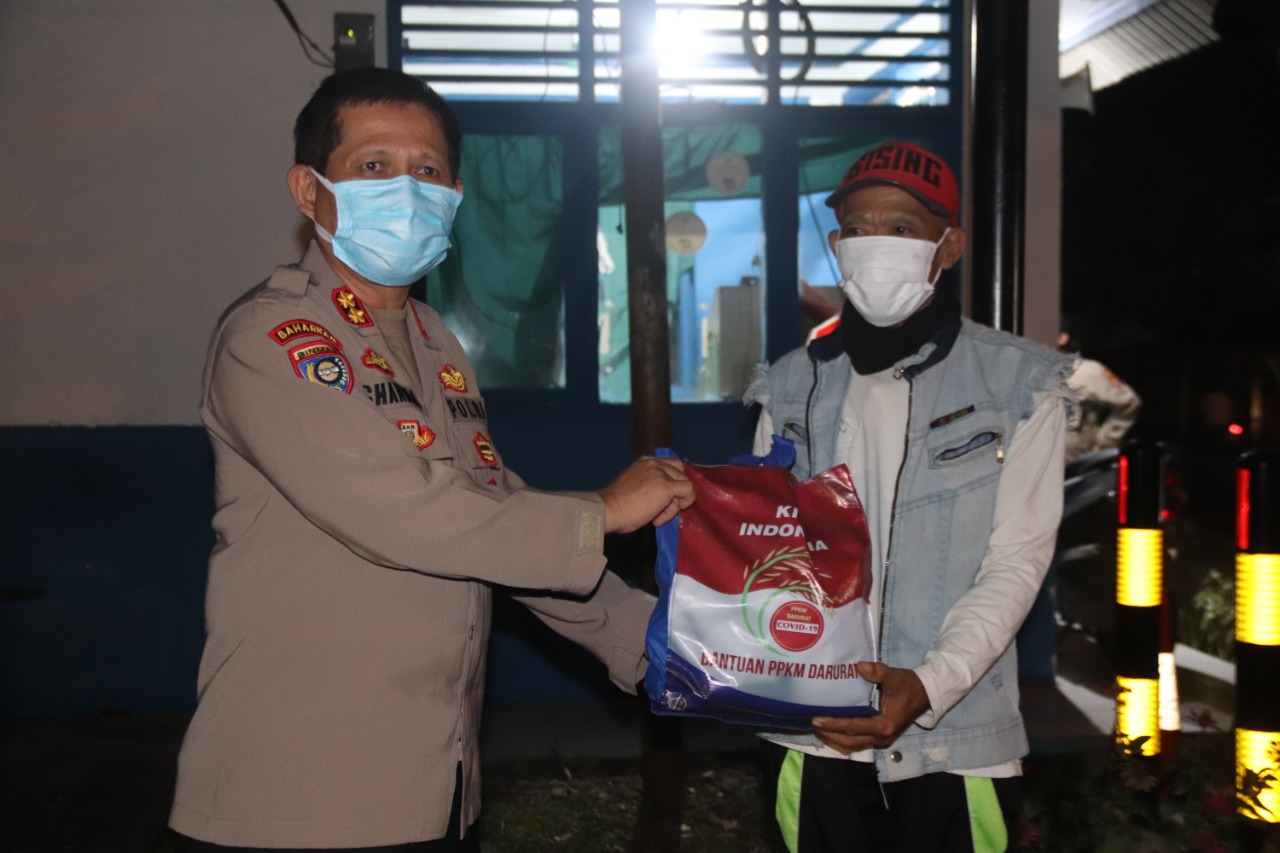 “Dan kami juga memberikan bantuan ratusan paket sembako kepada para pedagang serta warga yang terdampak PPKM Level 4,” tandas Edy Sumardi. (Darus/Bidhumas)