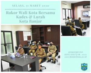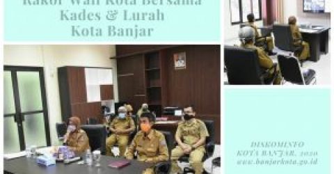 Berita Banjar (Jawa Barat)—- Dalam rangka pencegahan virus corona di Kota Banjar, Pemerintah Kota Banjar melalui bagian Tapem Setda Kota Banjar melaksanakan rapat koordinasi dengan para Camat, Lurah dan Kades se-Kota Banjar secara virtual meeting.