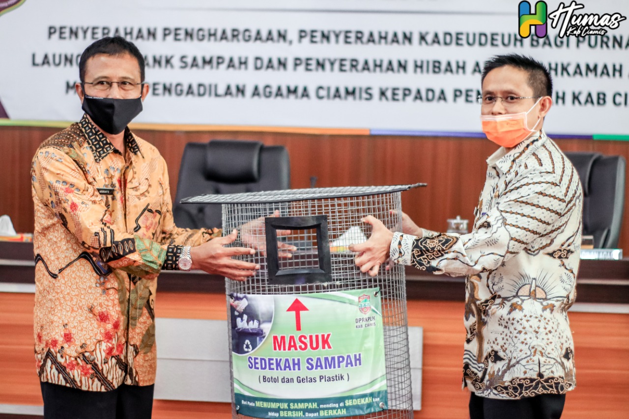 Pada kegiatan tersebut juga diisi dengan penyerahan penghargaan, penyerahan “kadeudeuh” bagi 327 ASN purnabakti tahun 2020, launching bank sampah dan penyerahan hibah asset Mahkamah Agung Republik Indonesia melalui Pengadilan Agama Camis kepada Pemerintah Kabupaten Ciamis.
