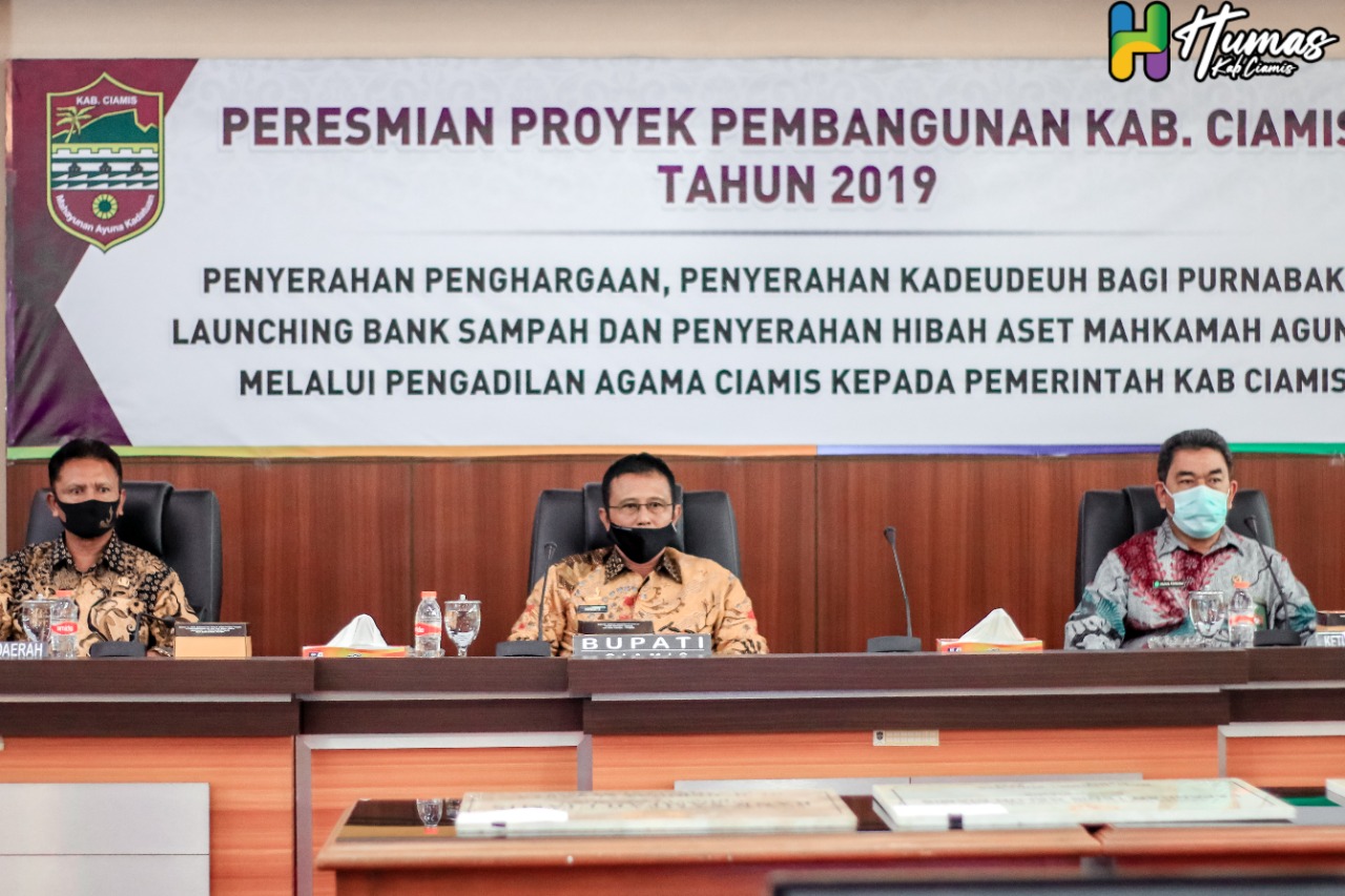 Berita Kab.Ciamis –— — Dalam rangka Hari Jadi ke-378 Kabupaten Ciamis, Pemerintah Kabupaten Ciamis meresmikan Pembangunan Tahun 2019 secara virtual yang diikuti oleh DPRD Ciamis, Unsur Forkopimda, SKPD, Lurah, Kepala Desa beserta Perangkat Desa se-Kabupaten Ciamis dari Aula Sekretariat Daerah Kabupaten Ciamis, Kamis (18/6/2020).