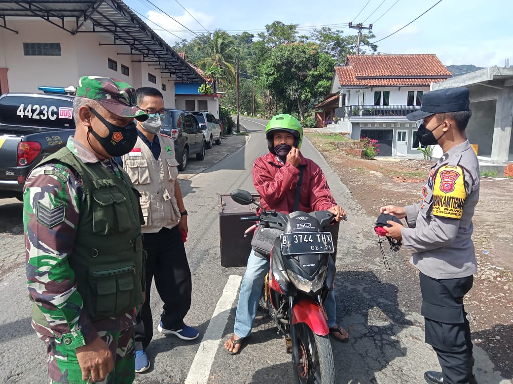 Berita Polres Majalengka, Jajaran Polsek Cingambul Polres Majalengka Polda Jabar bersama Koramil Cikijing menggelar aksi kemanusiaan berupa pembagian masker gratis kepada masyarakat dalam Operasi Yustisi untuk mencegah Covid 19. di jalan Raya Cingambul – Panjalu Desa Maniis Kecamatan Cingambul Kabupaten Majalengka,Sabtu (27/11/2021).