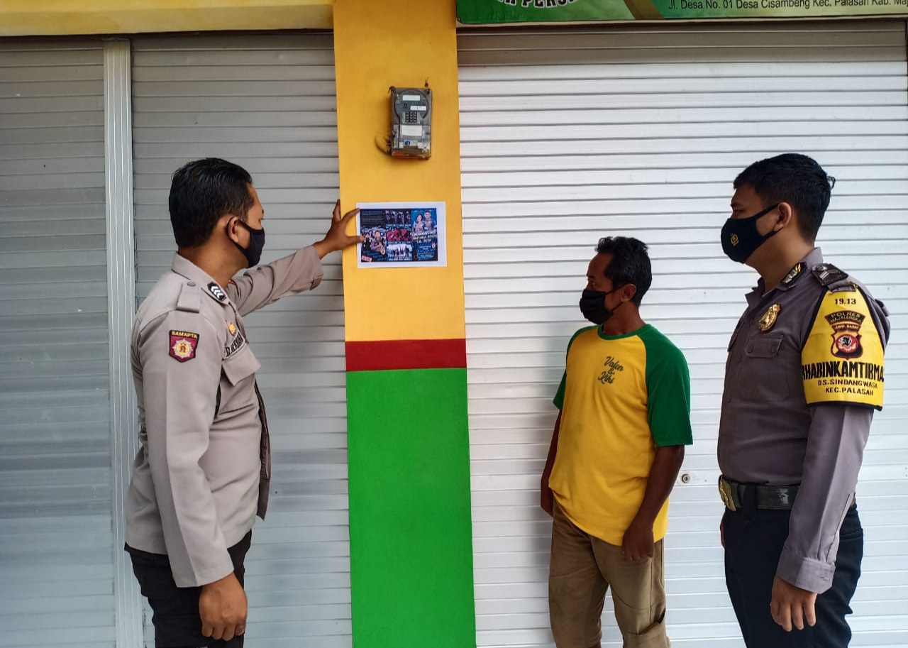 Berita Polres Majalengka, –Kapolsek Palasah Polres Majalengka IPTU FX Dalyanto bersama Anggota Bhabinkmatibmas memasang Brosur Penerimaan Anggota Polri TA 2021 di tempat yang strategis agar masyarakat bisa mengetahui kalau ada rekrutmen penerimaan Polisi. Sabtu (27/3/2020).