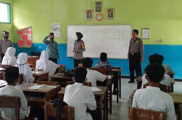 Bhabinkamtibmas Polsek Sukahaji Polres Majalengka Briptu Inten didampingi Kanit Samapta Menyambangi Sekolah sebagai wujud Kepeduliannya Kepada Para Pelajar agar tidak terjadinya Klaster baru disekolah. Ungkap Kapolres Majalengka AKBP Syamsul Huda melalui Kapolsek Sukahaji AKP Dadang Supriadi.