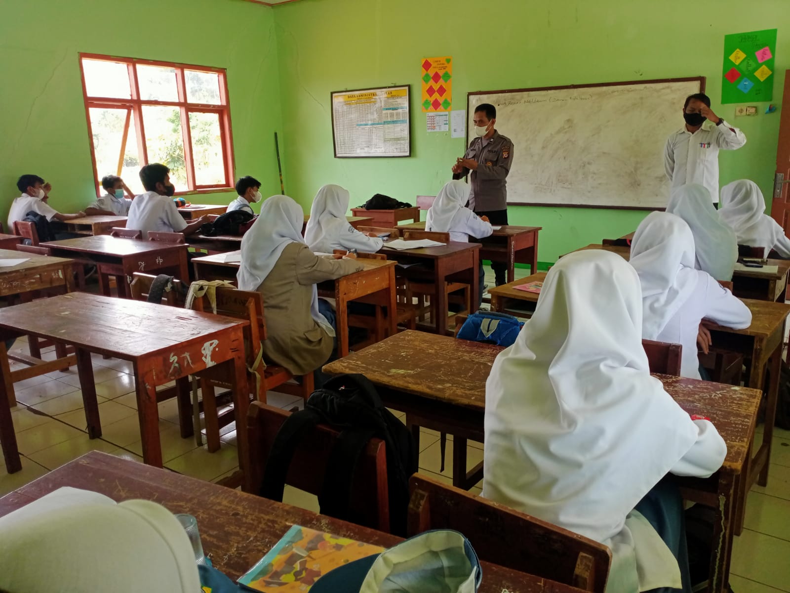 Berita Polres Majalengka,— Dalam memastikan pembelajaran tatap muka di sekolah berjalan aman, Kanit Bintibsos (Pembinaan Ketertiban Sosial) Sat Binmas Polres Majalengka Aiptu Saiful Islam melaksanakan Sosialisasi dan pemantauan penerapan prokes di Sekolah MA (Madrasah Aliyah) Al Hadad Kecamatan Malausma Kabupaten Majalengka, Jumat (8/10/2021).