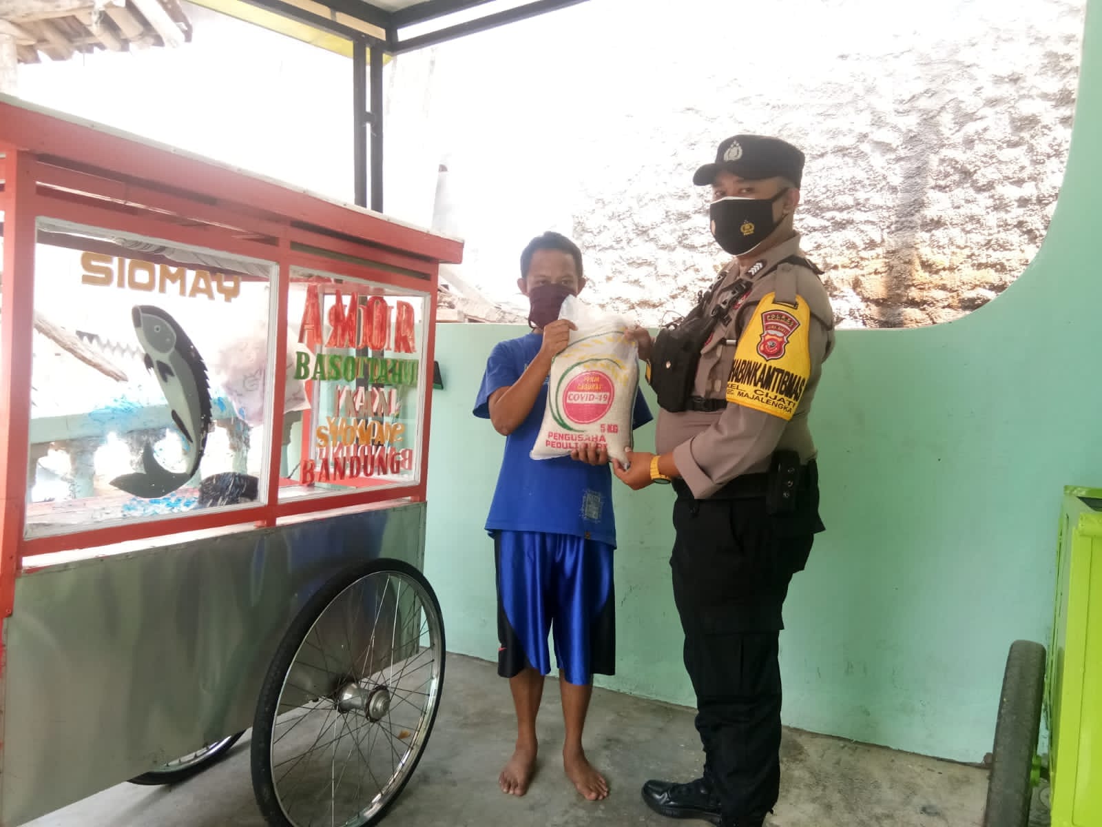 Sasar Pedagang Kaki Lima, Bhabinkamtibmas Polsek Majalengka Kota Salurkan Bansos Beras