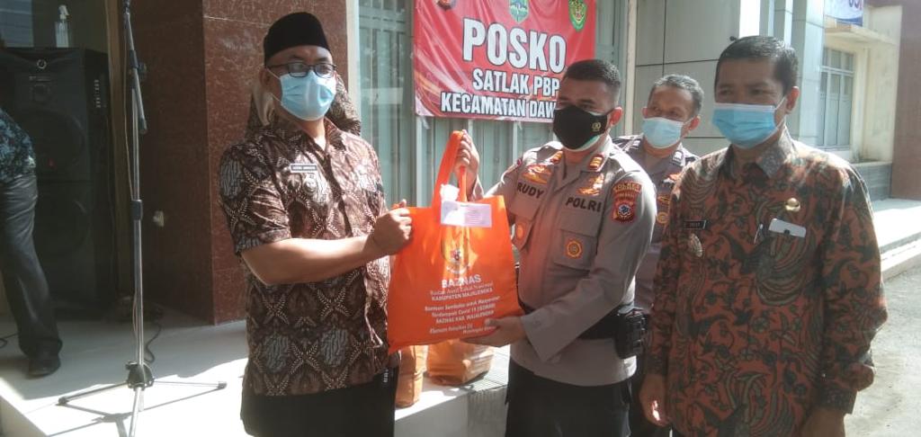 Penyaluran bantuan sosial dari Baznas Kabupaten Majalengka melalui Sat Binmas Polres Majalengka bersama Muspika Kecamatan Dawuan Kabupaten Majalengka menyalurkan Bansos berupa Paket Sembako dengan cara door to door system kepada masyarakat sesuai dengan data yang sudah diperoleh dari masing-masing wilayah Kabupaten Majalengka yang terdampak Covid 19.