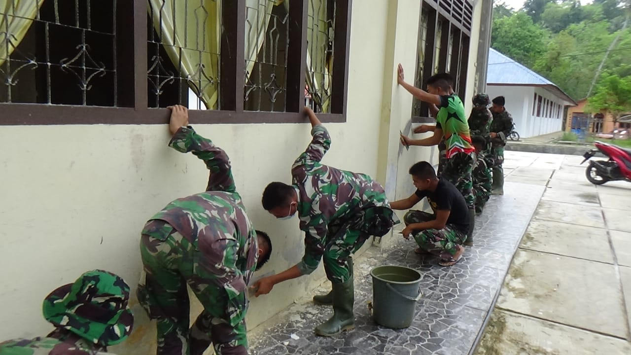 Berita Gunungsitoli, (Sumut)-, Kegiatan TMMD ke 110 tahun 2021 Kodim 0213/Nias, melaksanakan pengecatan di Gedung Gereja Jemaat Tuho Bouso Desa Loloana’a Lolomoyo Kecamatan Gunungsitoli Utara Kota Gunungsitoli. Jum’at (19/3/2021)