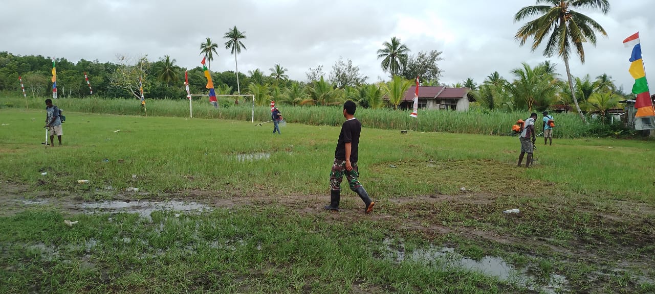 “Kerja bakti atau gotong royong ini dilakukan di lapangan bola untuk pembersihan rumput. Selain itu juga sebagai bentuk sinergitas antara warga dan TNI di program TMMD,” kata Serda Edwin.